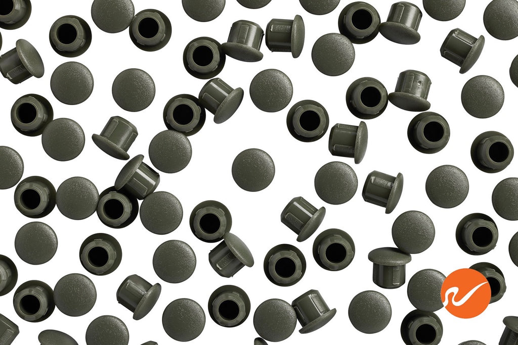 1/4" Military Green Hole Plugs are plastic hole plugs to cover, conceal and decorate 1/4 inch diameter holes in cabinets, furniture, window frames, vinyl fences and elsewhere. Fits any 1/4" diameter holes. Hole Plugs work practically anywhere indoors and out. Made from high-impact injection molded plastic. Bulk available.