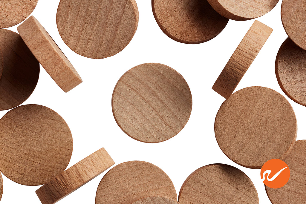 1" Cherry Wood Plugs are tapered wood plugs to fit 1" diameter holes on tables, chairs, cabinets, and DIY woodworking projects. 1" Cherry Wood Plugs have "Flat Top" and are End Grain. 1" Cherry Wood Plugs fit 1" diameter holes and taper in slightly to the bottom for a snug fit. Simply tap in with a rubber mallet or similar tool. No glue is necessary. 1" Cherry Wood Plugs can be sanded and stained. Bulk available.