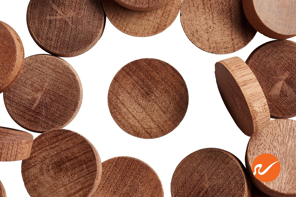 1" Mahogany Wood Plugs are tapered wood plugs and fit 1" diameter holes on tables, chairs, cabinets, and DIY woodworking projects. 1" Mahogany Wood Plugs have "Flat Top" and are End Grain. 1" Mahogany Wood Plugs fit 1" diameter holes and taper in slightly to the bottom for ease of installation. Simply tap in with a rubber mallet or similar tool. No glue is necessary. 1" Mahogany Wood Plugs can be sanded and stained. Bulk available.