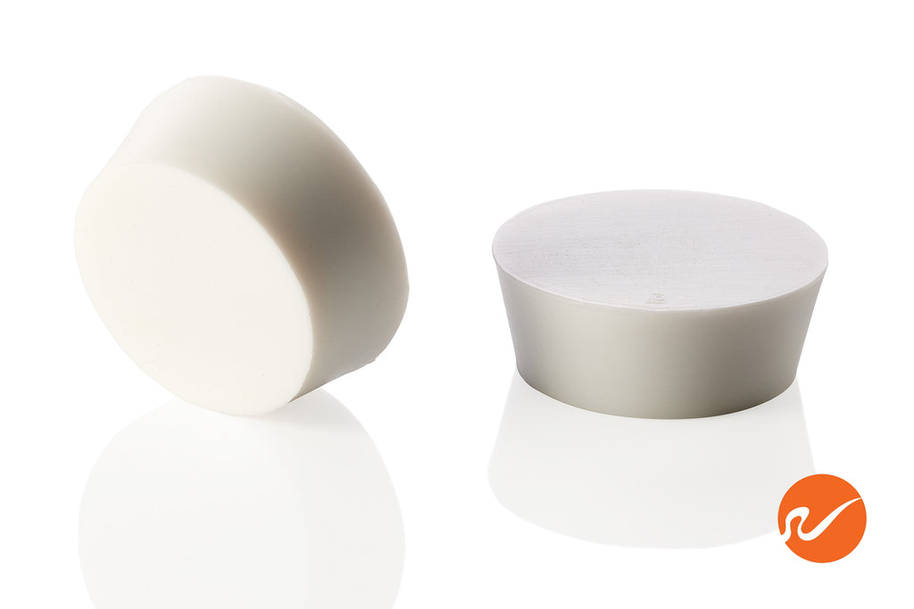 Size 13 White Silicone Rubber Stoppers are tapered Rubber Stoppers that will seal many kinds of containers, lab vials and other openings. Manufactured from Silicone Rubber. Suitable for many high-temperature industrial applications. Bulk available.