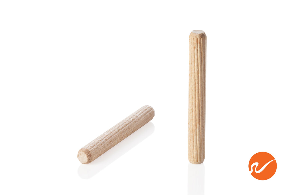 5/16" x 2-1/2" Multi-Groove Wood Dowel Pins are straight dowel pins to fit 5/16" holes on tables, chairs, cabinets, and DIY woodworking projects. 5/16" x 2-1/2" Multi-Groove Wood Dowel Pins have "fluted" multi-grooves for easy installation and for maximum adhesion. Simply apply a small dollop of wood glue into the hole and gently tap in the dowel pins with a rubber mallet or similar tool. Bulk available.