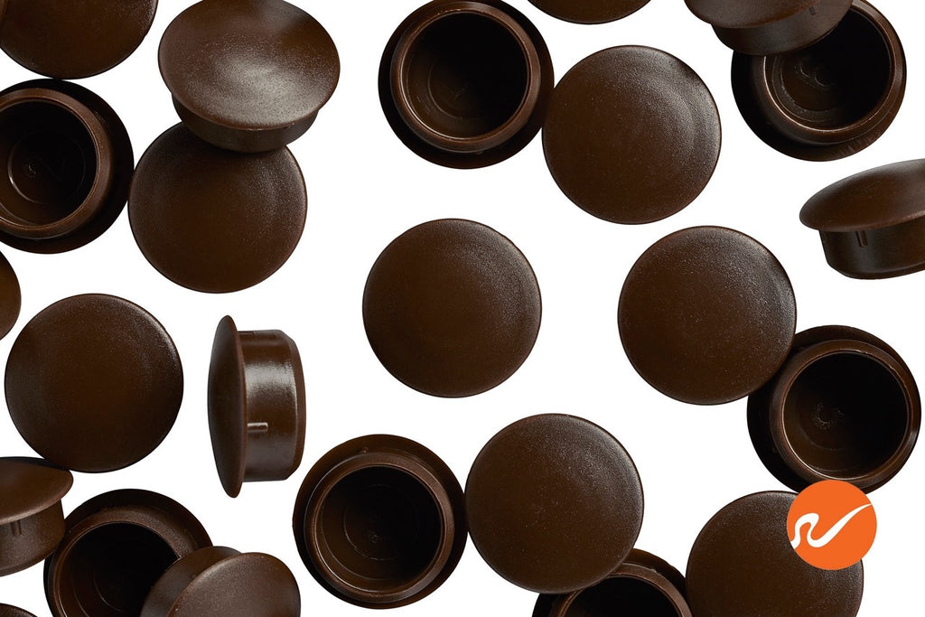 5/8" Dark Brown Hole Plugs are plastic hole plugs to cover, conceal and decorate 5/8 inch diameter holes in vinyl fence, windows, furniture, cabinetry, automotive, and elsewhere. Made of polypropylene plastic. More colors. Bulk available.