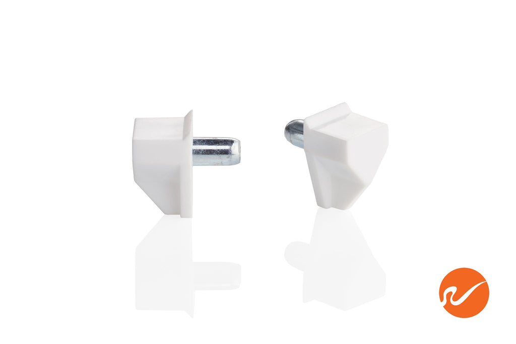 5mm White Plastic Shelf Pins fit any drilled 5mm holes common on many shelves, bookcases and cabinets. Made from high-impact plastic with solid metal pin. Color is white. We are sure you will be satisfied with the quality and style of these Shelf Pins / Shelf Supports or your money back. Bulk available.