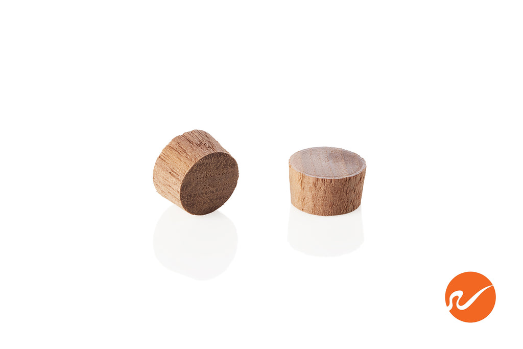 7/16" Walnut Wood Plugs are tapered wood plugs to fit 7/16" diameter holes on tables, chairs, cabinets, and DIY woodworking projects. 7/16" Walnut Wood Plugs have "Flat Top" and are End Grain. 7/16" Walnut Wood Plugs fit 7/16" diameter holes and taper in slightly to the bottom for ease of installation. Simply tap in with a rubber mallet or similar tool. No glue is necessary. 7/16" Walnut Wood Plugs can be sanded and stained. Bulk available.